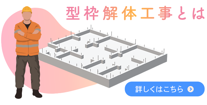 その後に行なわれる型枠の取り外し作業に特化している職人のことを「型枠解体工」といいます。