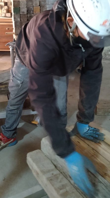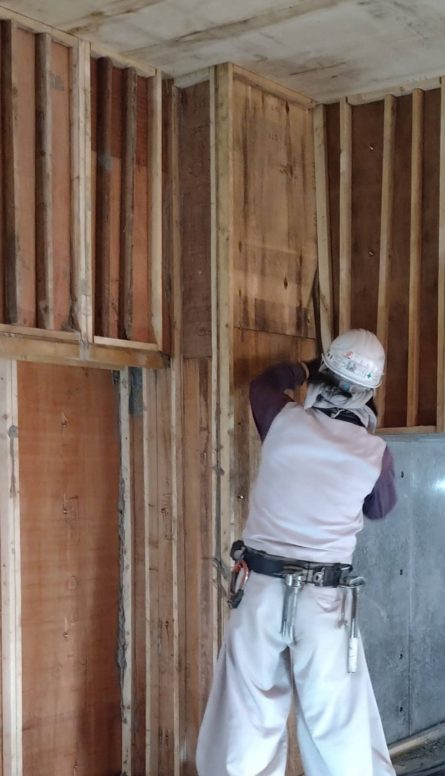 具体的には、コンクリートが固まり不要になった型枠などをハンマーやインパクトドライバー、バールを使い撤去していきます。